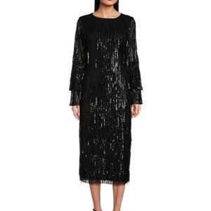 Long Bell Sleeve Boat Neck Sequin Midi Shift Dress