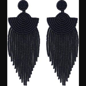 Long Black 4.25" Modern Art Deco Oversized Earrings Beaded Bohemian Tassel New