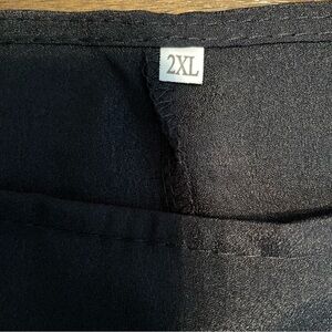 This long black maxi dress has long sleeves, two side pockets, and a banded waistband with a matching fabric belt. There is a fabric label and a size label but no brand tag. I am not sure but it could possibly be a dress of a higher quality costume. It does not have any zippers. It is a poly spandex blend and it definitely can be worn as part of a costume but it can also be worn as a maxi dress glammed up for an evening out and no one would k ow if you paid $30 or $100! It is not lined and it has only slight give so please refer to the measurements before purchasing as it says 2XL but I would want you to be sure of fit by the measurements. Thank you. ๐ measurements are ( flat laid ) PTP 20 1/2โ waist ant is 2 1/2โ wide waist is 16โ length is 56 1/2โ sleeve is 23โ