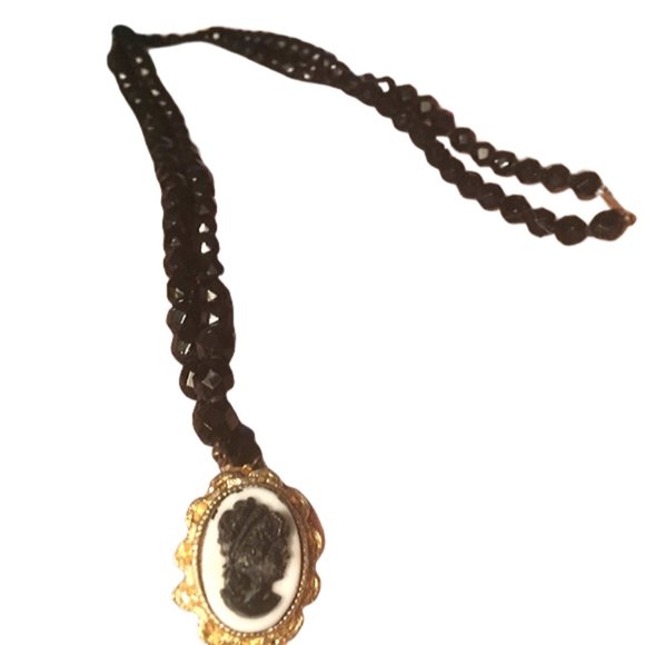 Brooch is worn - look carefully at photo to see black marks on side of white background and small missing section of face. Unless you study it, this comes across as vintage - arguably adding to charm of piece.