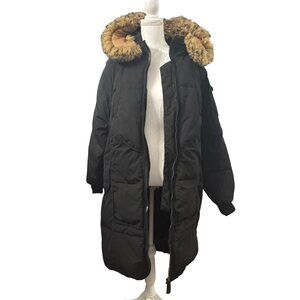 Long Black Puffer Coat With Faux Fur Hood & Zipper Closure By You.u Size XL