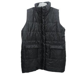 Long Black Puffer Vest Jacket Flapped Pockets Plus Size 4XL NWOT