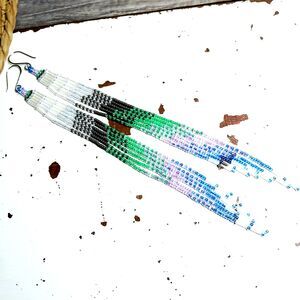Long Boho Beaded Cascade Fringe Dangle Earrings, Seed Bead Jewelry 8"