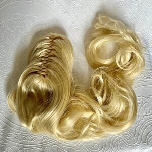 Long Bright Blonde Curly Clip On Ponytail Cosplay Costume Daily Wear
