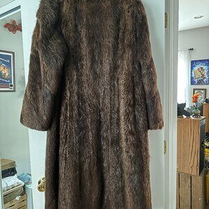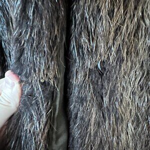 I'm unsure of what kind of fur the hacket is made out of, but I know it is genuine fur! Wearing vintage fur is better for the environment than newly make faux fur! This comes as is and has wear and tear in the pockets and the armpit areas. Obviously, this is EXTREMELY warm!