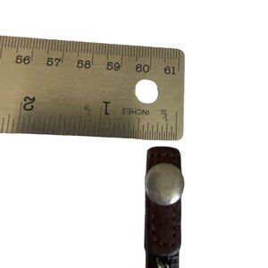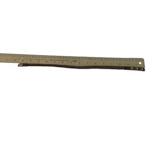 Guang Tong brown leather & copper wire wrap bracelet. Adjustable snap closure.