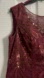 Beautiful long burgundy dress is in perfect condition ready for any event, dress has rose gold like sequence throughout the entire dress