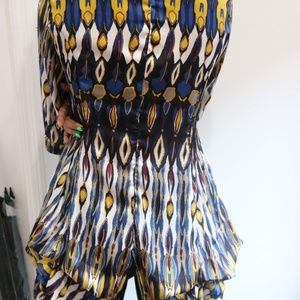 Long Button Down Patterned Blouse