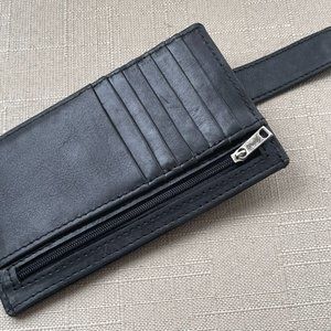 Long Card Holder Wallet Handheld Handmade Black Genuine Leather Multi Compartment