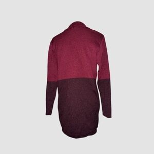 · Long multicolor burgundy wool cardigan with front pockets and collared hem