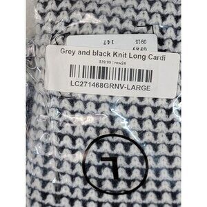 Long Cardigan Sweater Black & White Knit Cuff Long Sleeve Womens Size Large New