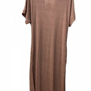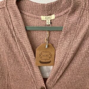 Women’s long cardigan. Women’s Small. Short sleeves. 2 front pockets. Brand New With Tag. Color: Blush. Extra button attached.