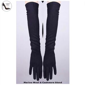 Long Cashmere Merino Wool Gloves Classical Black Opera Driving Winter Warm Glove