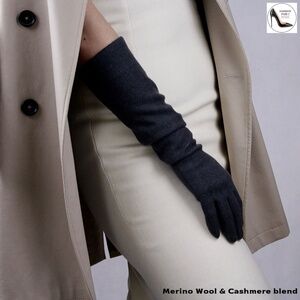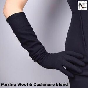 Women Long Cashmere Merino Wool Blend Gloves 20-inch Classical Black Opera Driving Winter Warm Gloves