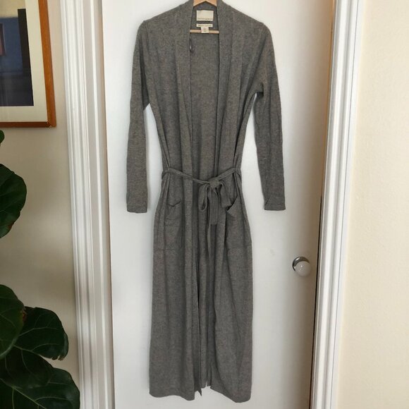 Gorgeous soft long cashmere robe. Deluxe and cozy for cold mornings! One small hole on the back left side, shown. Otherwise really great condition - no pilling.