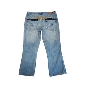 Long Chang Jeans Girls Size 29 Capri's. No rips or tears detected throughout the garment. There is one zipper pull on the back pocket that is missing. See photos. See photos for condition and measurements. All measurements taken while laying flat. Double check your measurements against the measurement photos please.