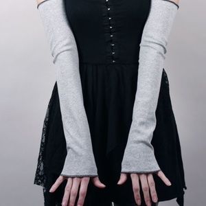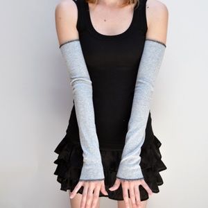 Long Cotton Arm Warmers Gray Armwarmers Grey Sleeves Warm Fingerless Gloves Goth