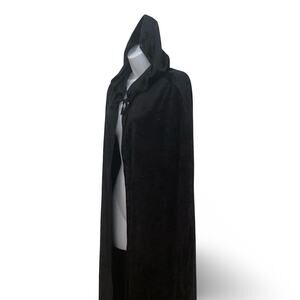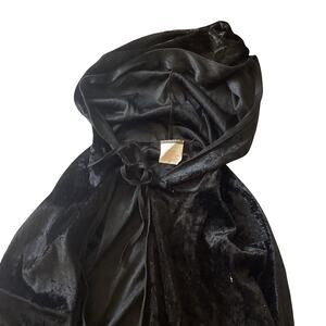 Long hooded crushed velvet cape or cloak by Country Silk Inc. in good preowned condition. No flaws. Can be used with so many costume outfits. Great for Halloween.