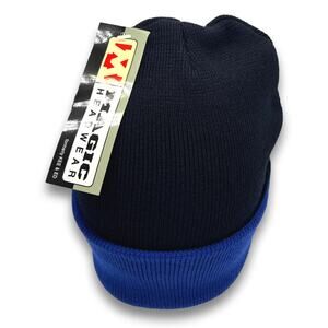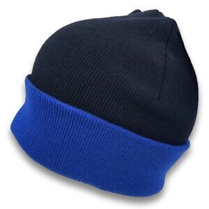 Black/Blue Long Cuffed Double Layered Beanie Thick Two-Tone Winter Ski Hat Snowboard Cap