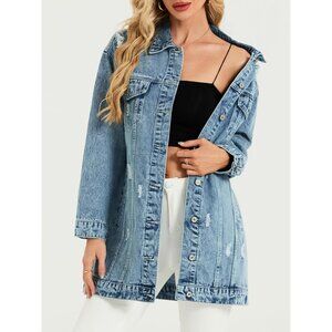 Long Denim Jacket Women Oversized Ripped Casual Fall Streetwear