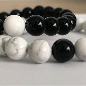 Long Distance Relationship Bracelet Black White Stone Beads made of Turquoise and Onyx