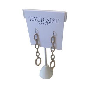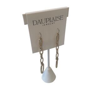 Long Drop Hammered Gold Tone & Pave Crystal Earrings.