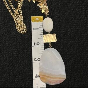 Long Earthy Tone Agate and Scolecite Gold Tone Necklace