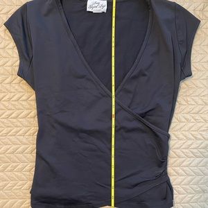 Cross over LBS (little black shirt). Versatile piece in any wardrobe. Works with skirts, jeans, shorts. No flaws, gently used, smoke free home.