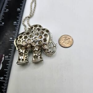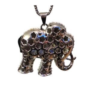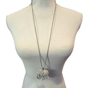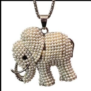 Long Elephant Pendant Necklace Faux Pearl Beaded Silver Tone Statement 32"