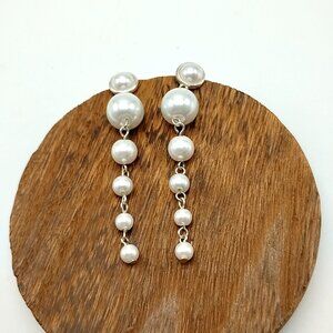 ♦ Style: Sophisticated cascading drop earrings featuring graduated white faux pearls