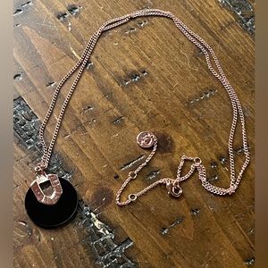 Beautiful rose gold tone necklace with a a colorful shell tone embellishment. Just right for adding a touch of Sophistication to any outfit.