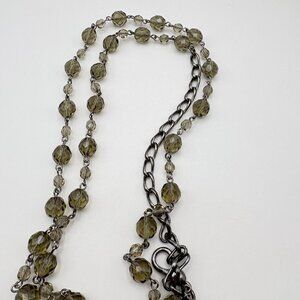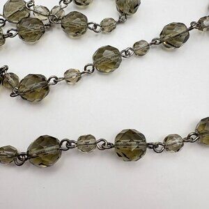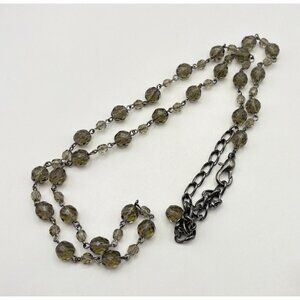 Long Faux Smoky Quartz Beaded Necklace Silver Tone Chain Faceted Beads