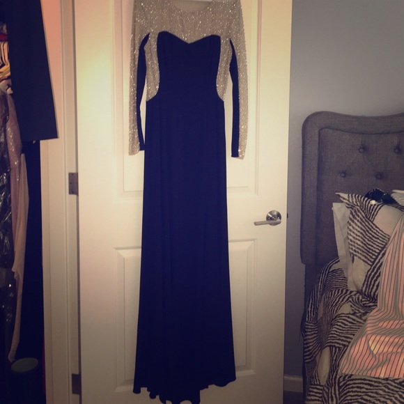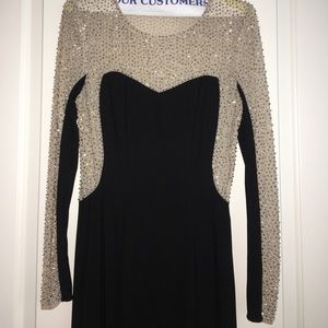Gorgeous studded Formal Dress. Wore for sister in laws wedding. Got so many compliments! Back is see through but you can’t tell even when wearing a bra because of heading. Sparkles! Do not have use for it anymore but would love to see I️t go to a great home.
