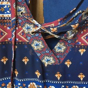 Very light and fun, this dress has leg slits and multiple ways to wear the ties.