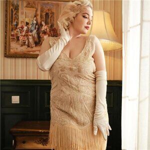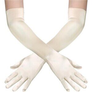 Long Gloves Satin for Party Beige