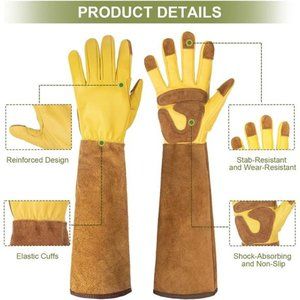 [Flexible and Breathable] Ergonomic thumbs make it easier to grip gardening tools, and the cowhide leather long garden gloves are flexible and puffy enough to maintain flexibility and breathability for fine motor tasks.