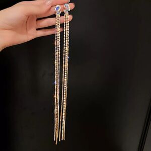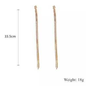 Long Gold Crystal Rhinestone Earrings Luxury Bling Jewelry Gift Party Club Sexy