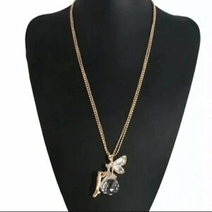 Long Gold Glass Crystal Ball Fairy Necklace NWT