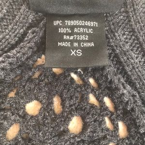 Long Gray sweater cardigan with crochet design in the back. Length:31.5”