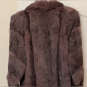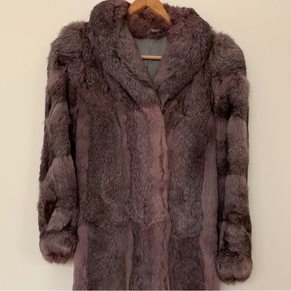 -- GRAY RABBIT FUR COAT WITH PINK-PURPLE HUE, HEART SHAPED COLLAR