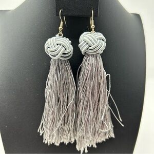 Long Gray Tassel Fringe Knotted Dangle Earrings Gold Tone Hook