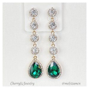 Long Green Crystal Dangle Earrings Light Comfortable Special Occasion Spa…