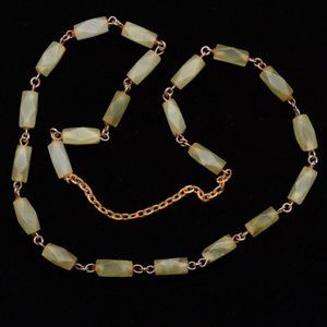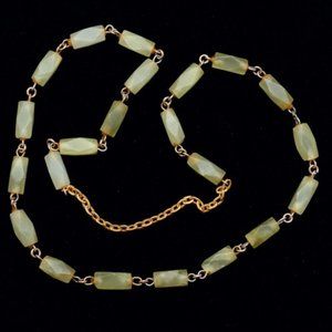 Long 30-inch necklace of carved Serpentine semi-precious gems.