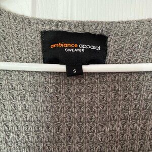 Long grey knit cardigan with pockets from Ambiance Apparel. Perfect for sweater weather!