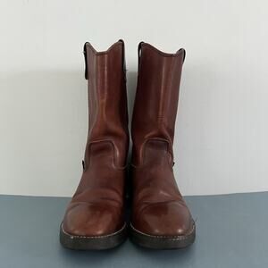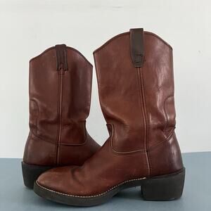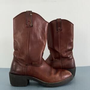 Long Haul Brown Leather Pull On Cowboy Western Work Boots
