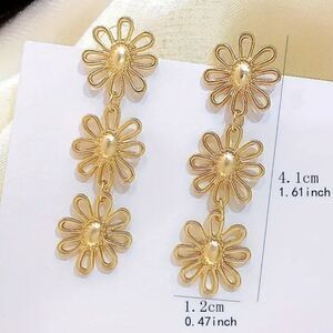 - Gold Drop Earrings with Hollow Flower Design. Add a touch of glamor and sophistication to your look with these dazzling Gold Drop Earrings.