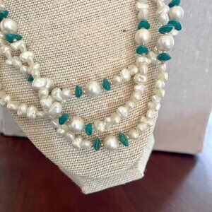 Long Imitation Pearl and Turquoise Beaded Necklace