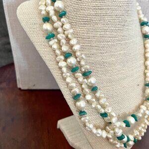 Long Imitation Pearl and Turquoise Beaded Necklace