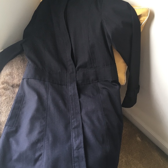 Black pinstriped turn up collar jacket with side pockets and double vents in back
