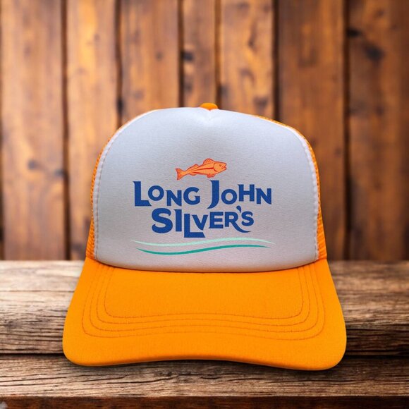 Long John Silvers Retro Logo Mens Trucker Hat Orange Snapback Seafood Restaurant